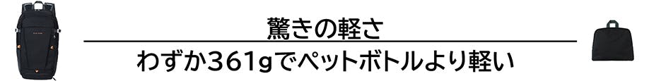 「Calce」は20Lの大容量を持ちながら、重さはわずか361gで、ペットボトル1本分よりも軽いです。リュックとしても予備バッグとしても軽いほど、背負い心地が快適になります。