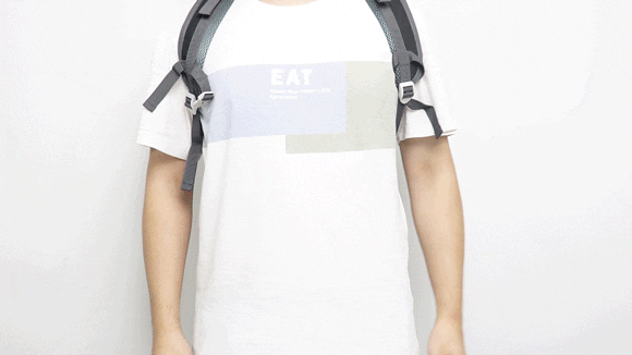 リュックの後ろとショルダーハーネスにはスポンジを内蔵し、移動する時の衝撃を吸収し、肩への負担を軽減します。