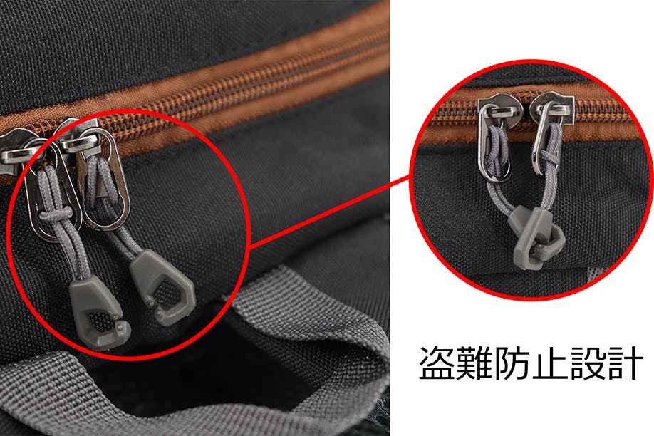■防水性、分類収納、圧力分散、盗難防止などの機能を持つ