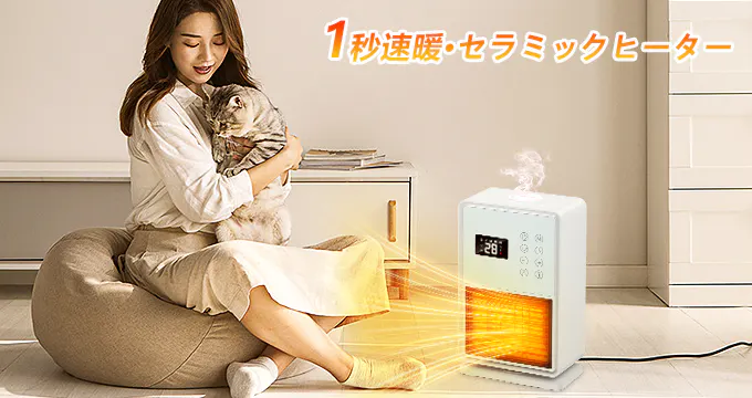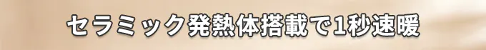 ②セラミック発熱体を採用するためわずか1秒でぽかぽか。温度も風量も調節可能。