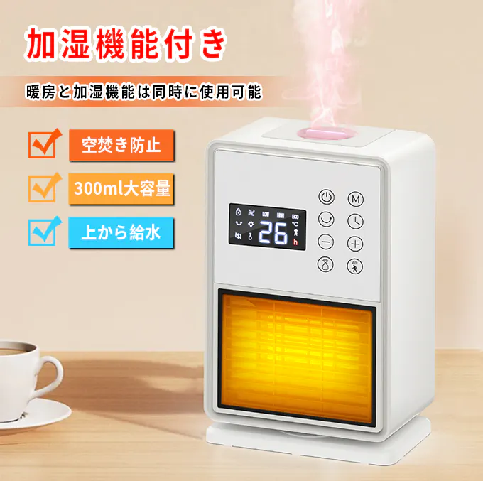 ①暖房・扇風機・加湿器が一体になり、一年中使用可能。