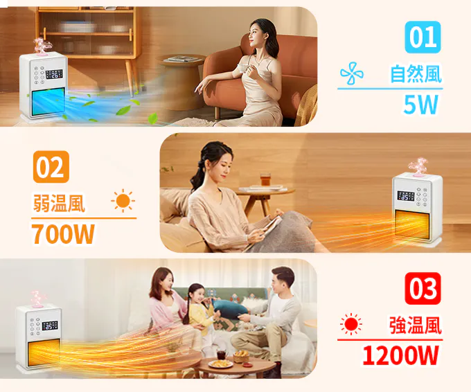 KANWAIはPTCセラミック発熱体を採用し、電熱変換率が高く、電源を入れるとわずか1秒で温風が出ます。仕事が終わって家に帰ると、すぐに暖かさを感じられ、苦労も全部吹き飛びます。