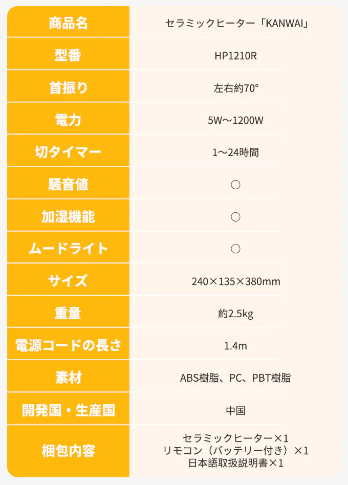 KANWAIは、暖房・扇風機・加湿器の3in1多機能セラミックヒーターです。暖房による乾燥の問題を軽減するために、革新的に加湿機能を追加します。実用を追求すると同時に環境にも配慮しています。レーダー人感センサーとECO知能恒温モードを搭載しているので、誰も使用していないときや、室温が設定温度より高くなったときに自動的に運転を停止し電気代を節約します。