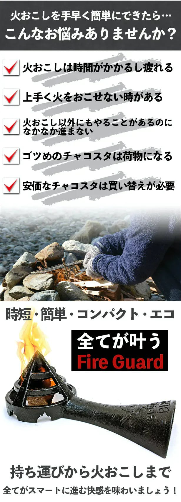 Fire guardはキャンプ、アウトドアの火付けに使える新しいキャンプギアです。