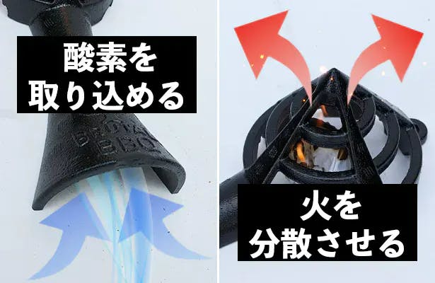 そして着火剤を被せる部分は網形状になっているため、火を分散させて効率よく炭に着火させることができます。