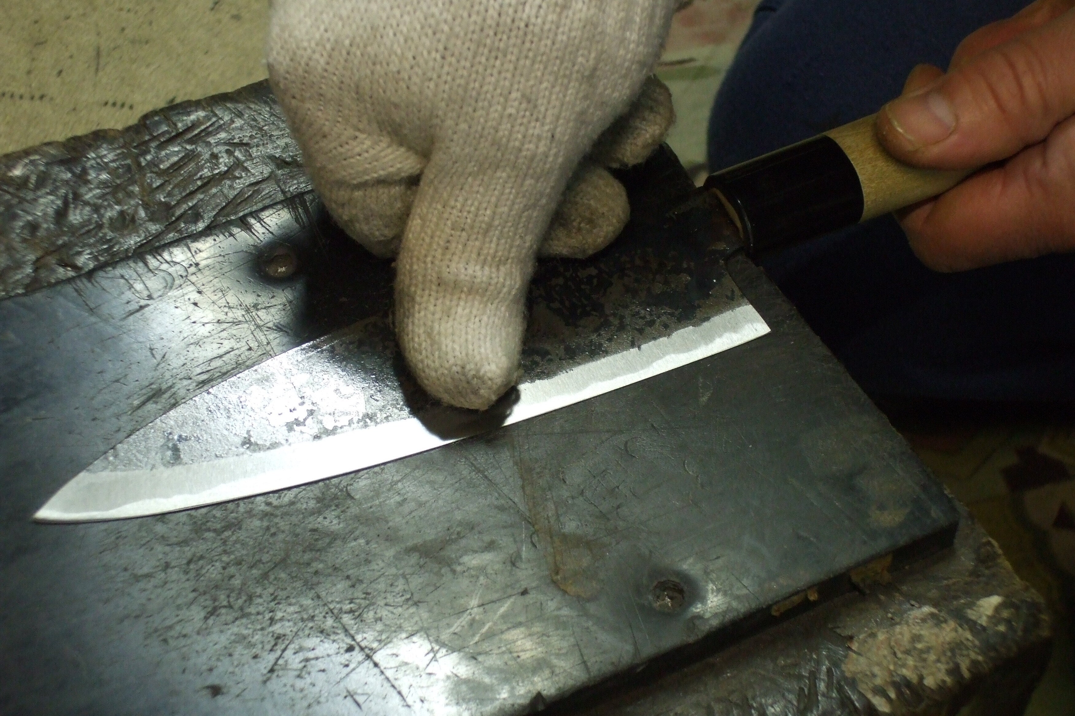 研ぎで少し曲がったりしているので指でひずみを直します。