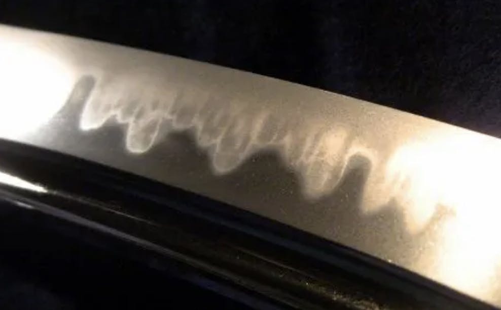 切れ味の秘訣は割り込みと言われる複合材による構造と水焼き入れにあります。