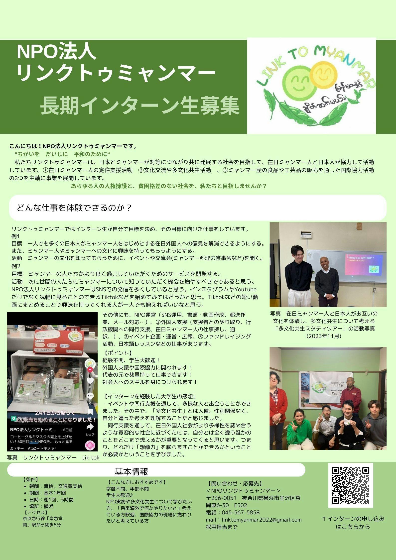 NPO法人リンクトゥミャンマーインターン生の山田です。