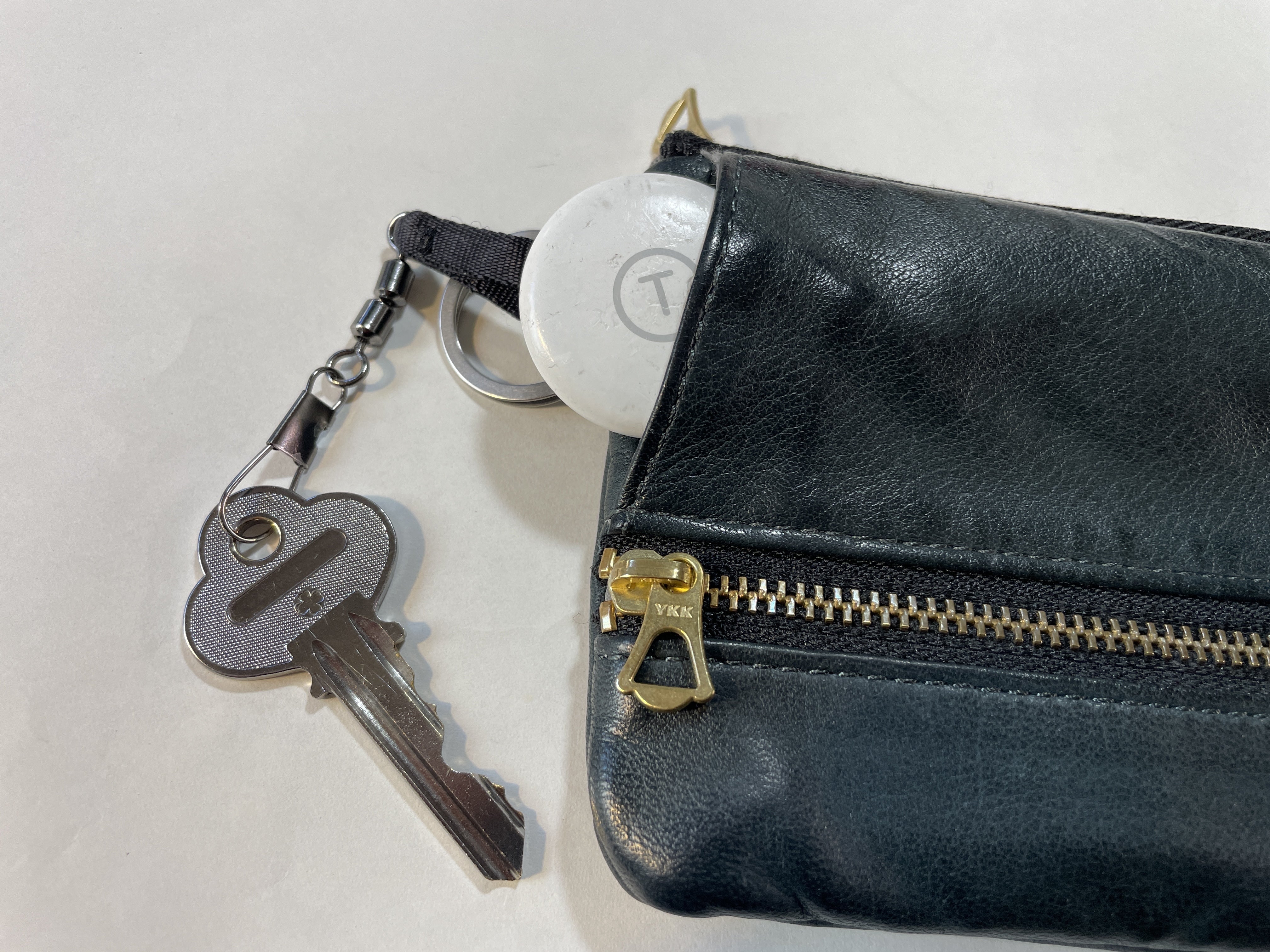 初めは外のWリングに付けてブラブラな状態でしたが、試行錯誤の上に今回のデザインになりました。鍵がさっと取り出せる”引っぱり”を付けました。