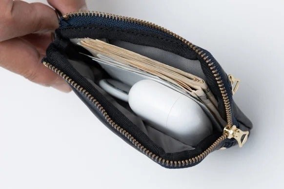お札を二つ折りにしてスッと入れられます。領収書なども一緒にどうぞ。余裕の収納力で盗難防止タグも入ります。
