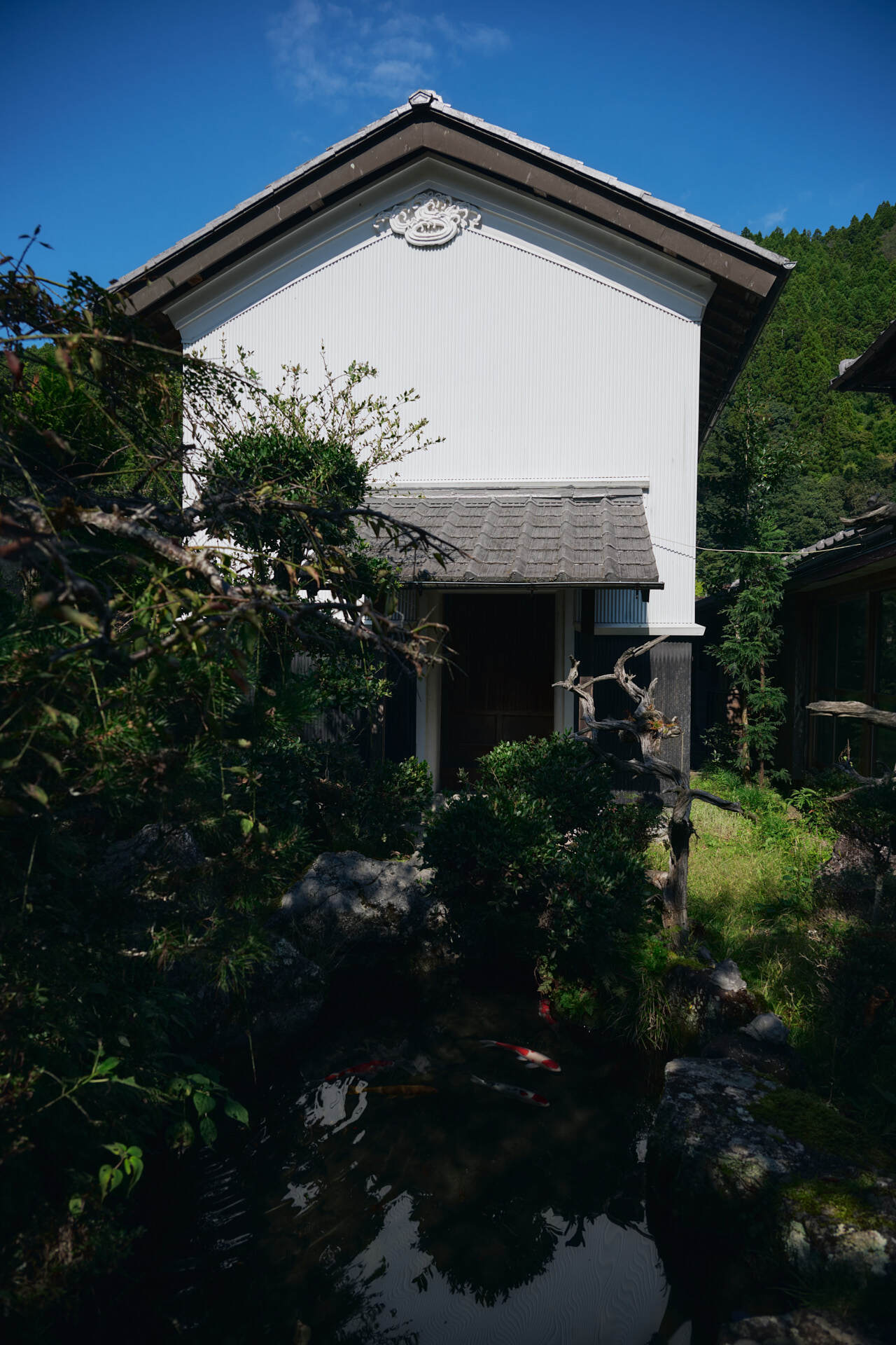 立派な蔵。蔵の前には鯉の泳ぐ池があります。
