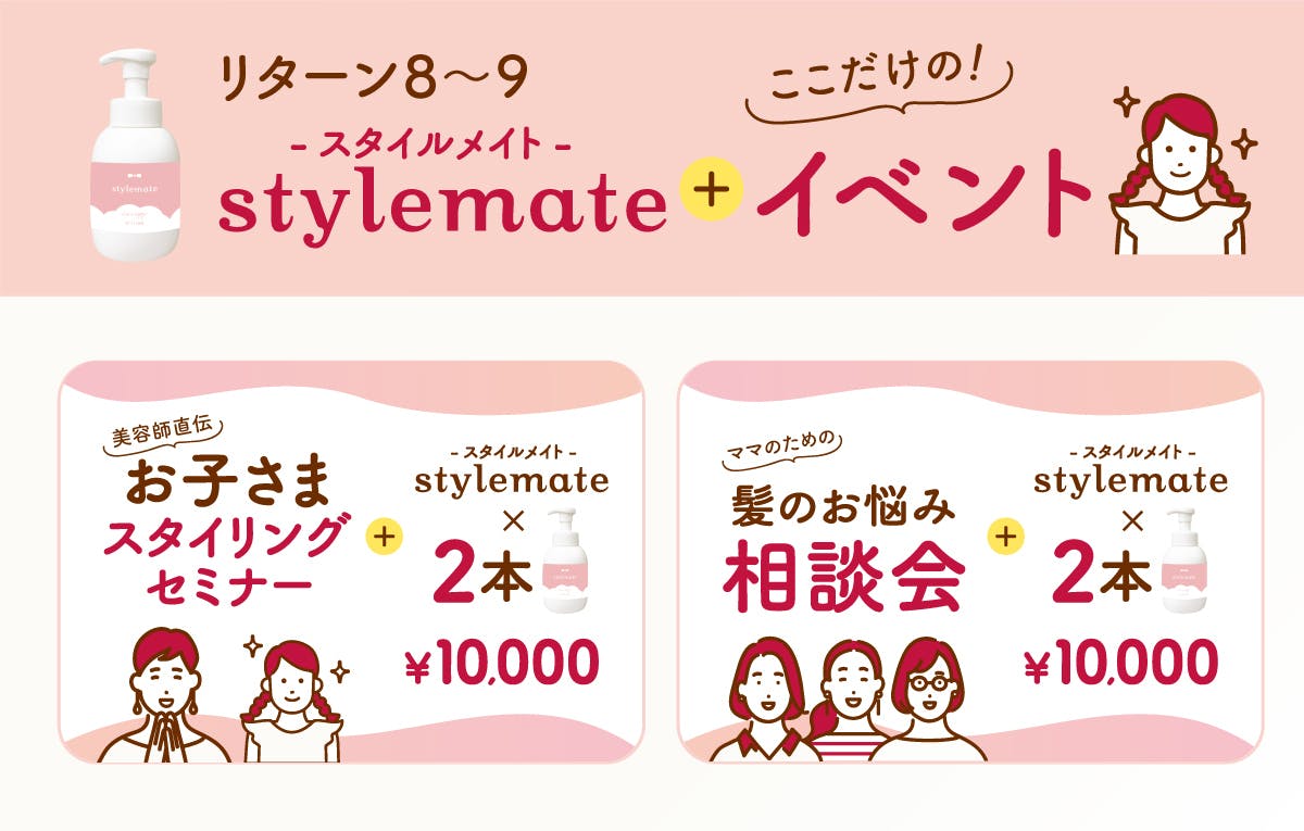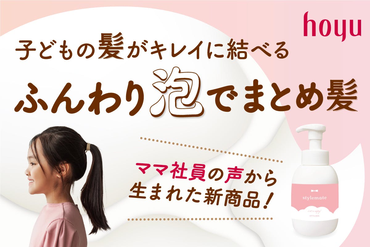 髪にまつわるプロ集団、ホーユー社員からも好評のスタイルメイト!お子さまにぴったりのスタイリング剤を見つけられていない、という方は、ぜひこの機会にお試しください!