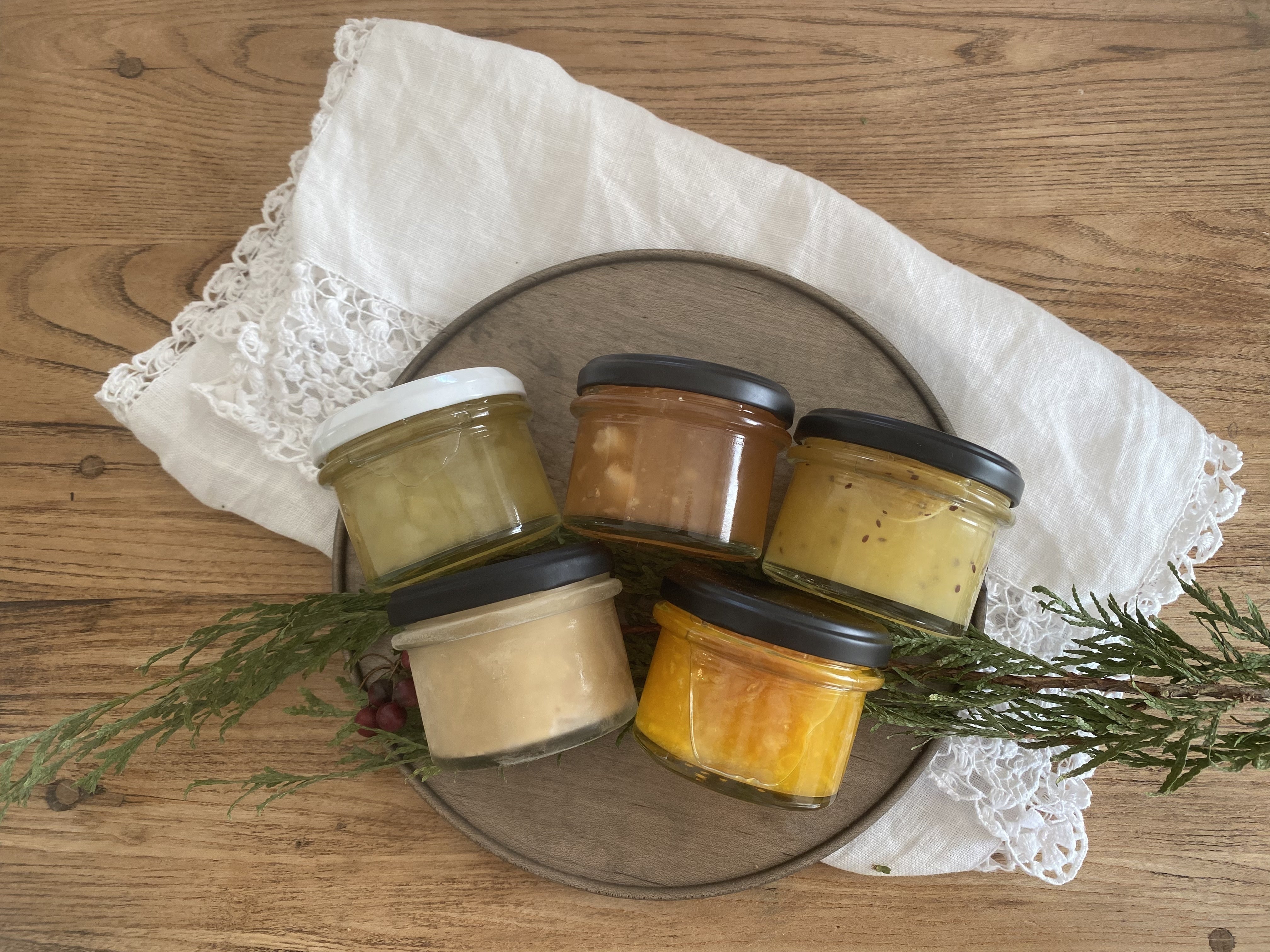 お返しの品は、店舗開業後に販売予定のコンフィチュールや焼き菓子の中からお日持ちのする商品を主にお送りさせていただきます。