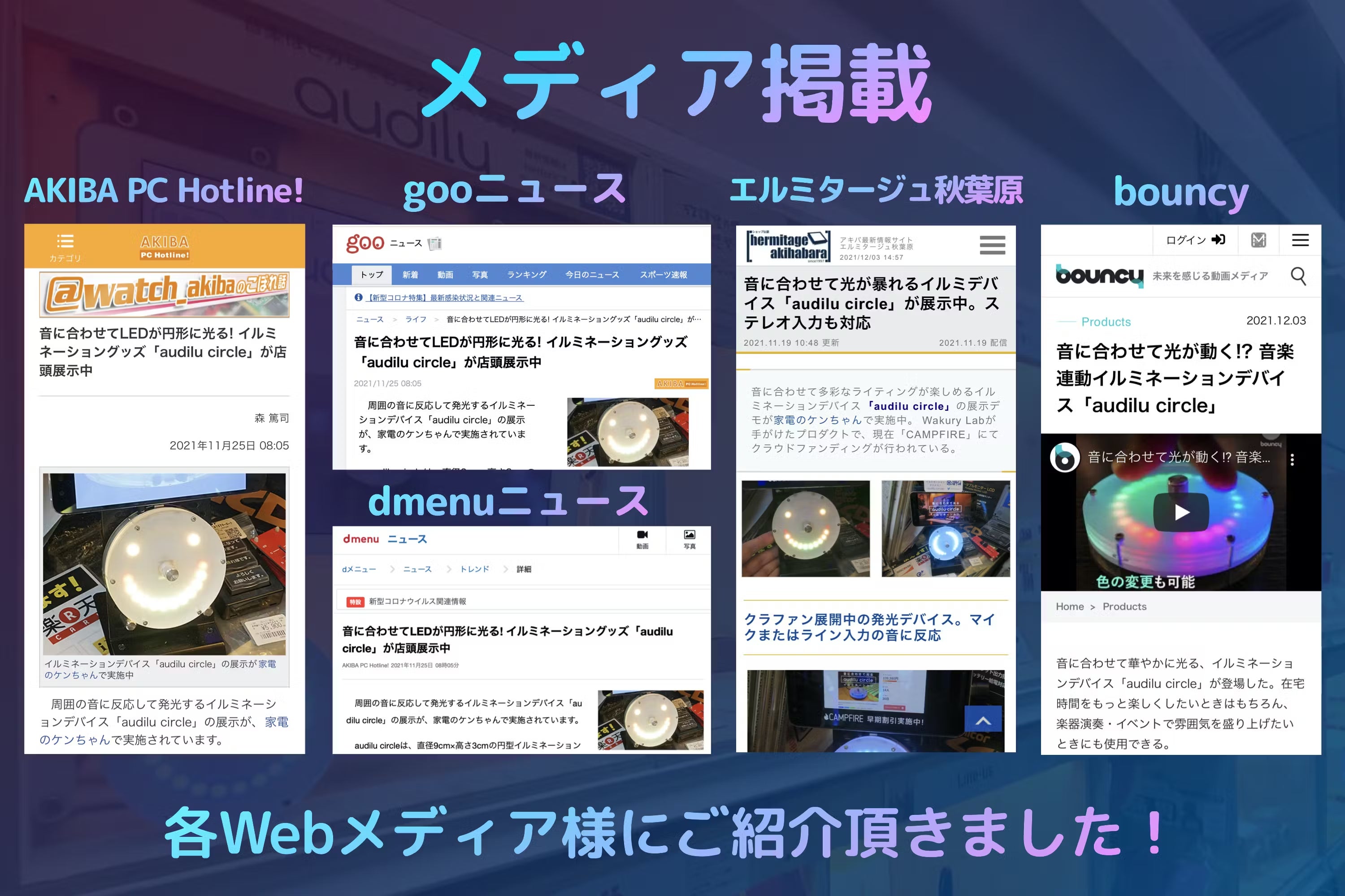 audilu circleは各種Webメディア様にてご紹介頂いております!