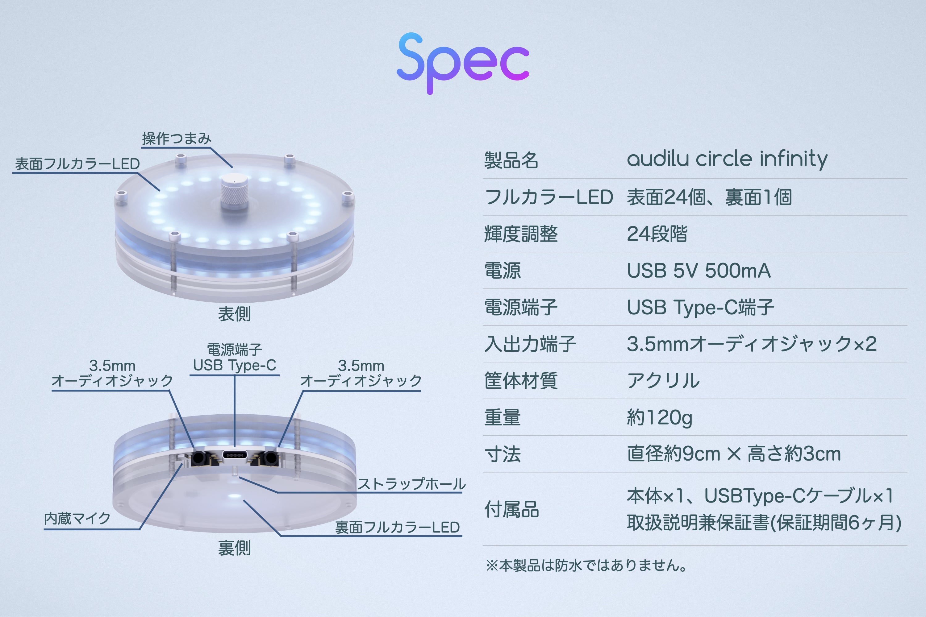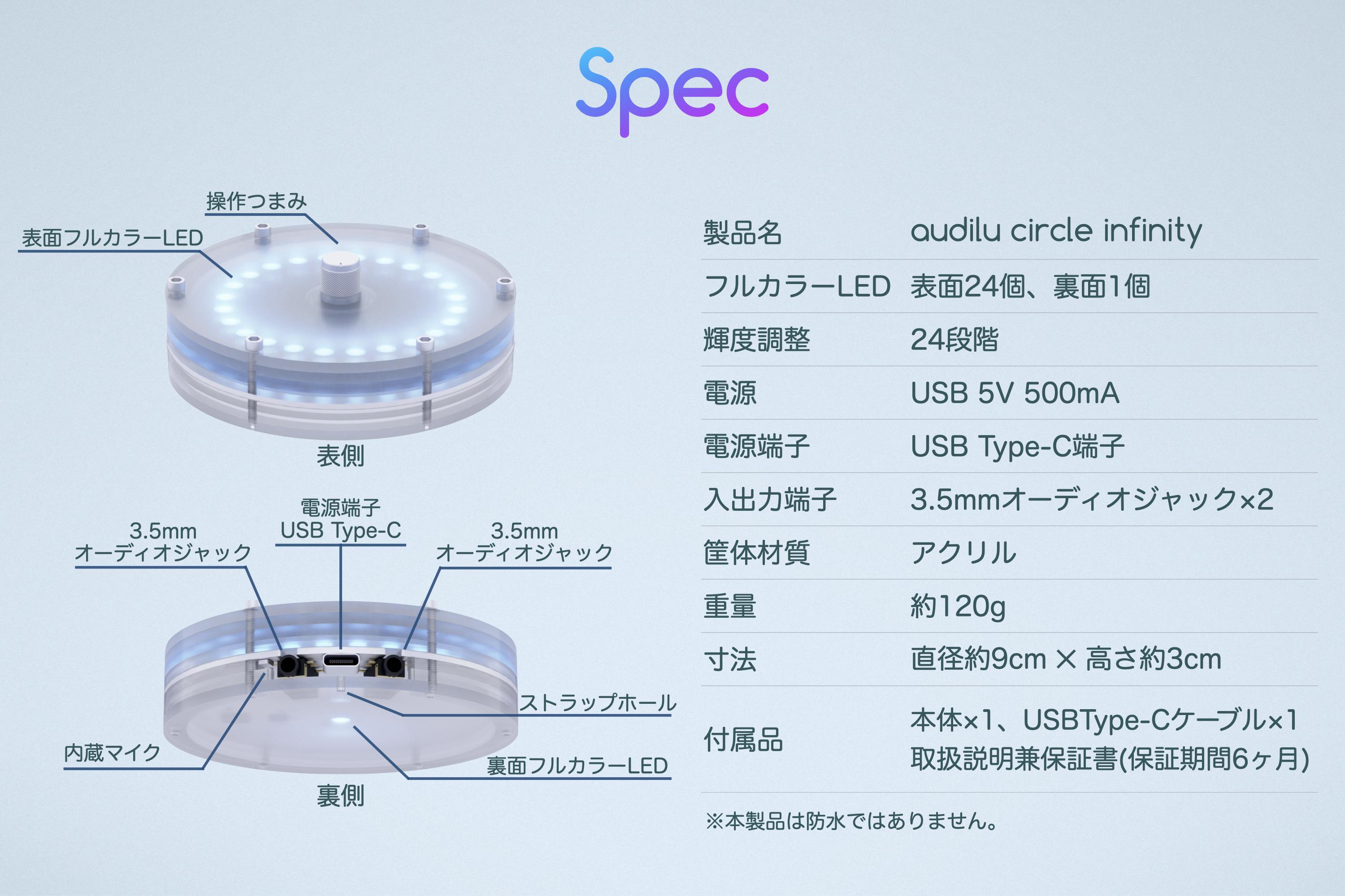 ご好評のaudilu circleの機能はそのままに、インフィニティミラーを採用した幻想的で美しいデザインのイルミネーションデバイスが誕生しました!