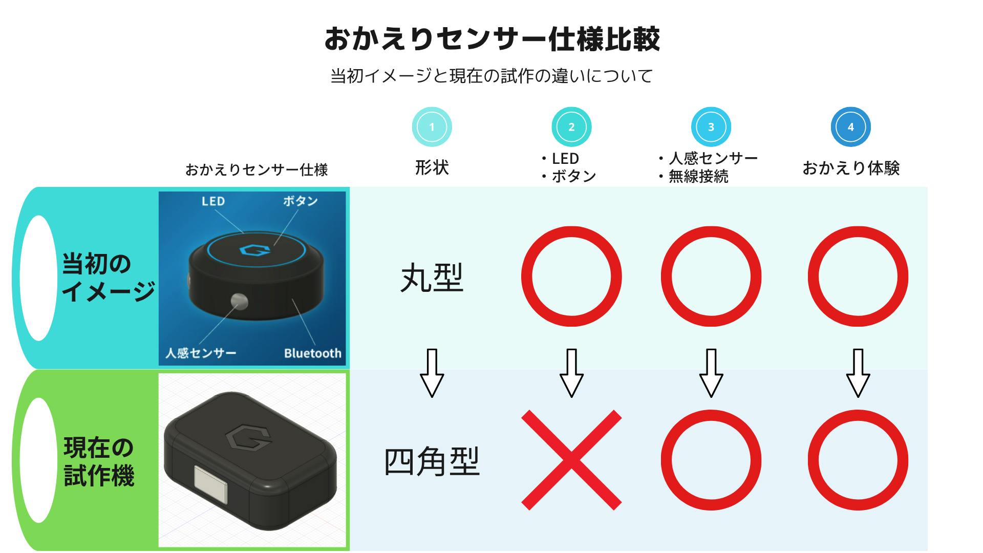 現在開発中のおかえりセンサーについて、クラウドファンディング募集時から一部仕様の見直しを行いましたので、ご報告いたします。