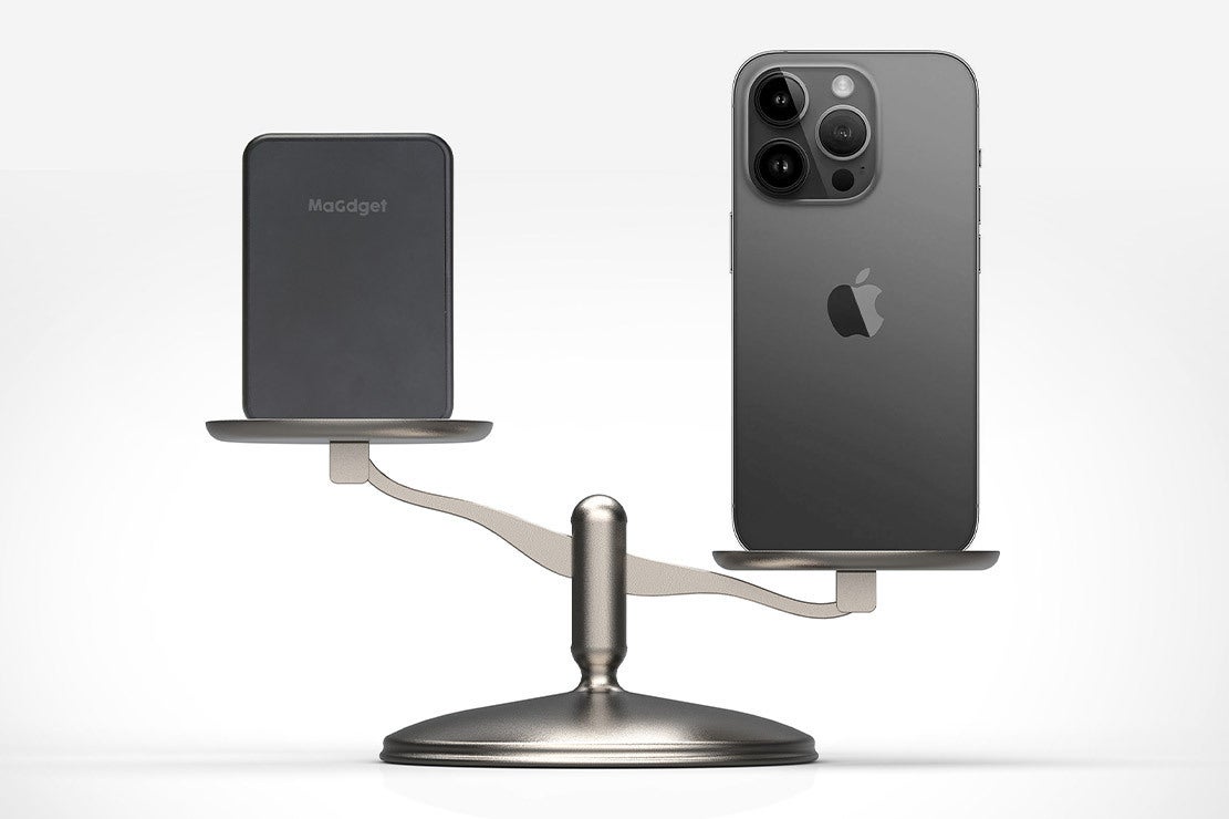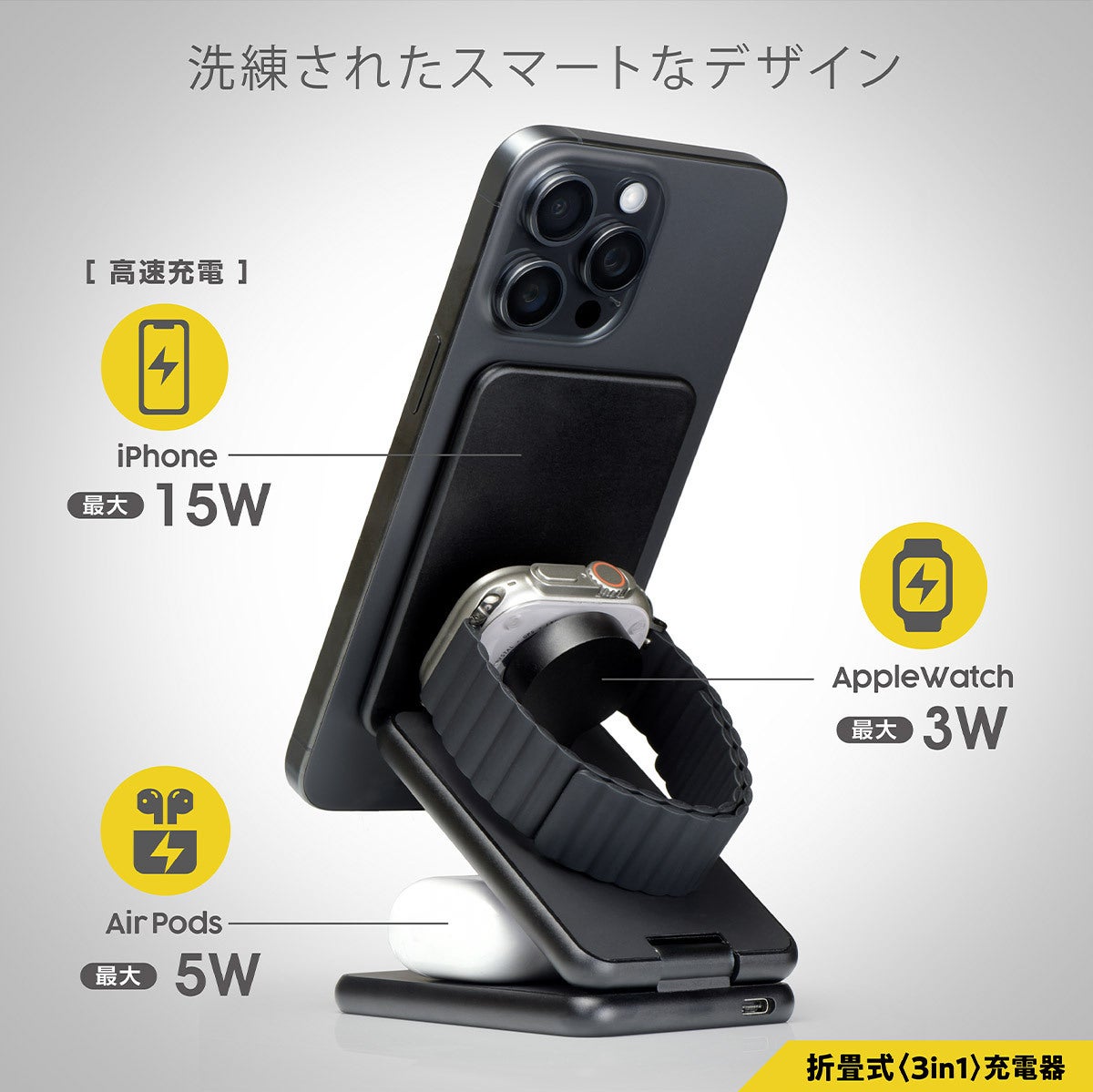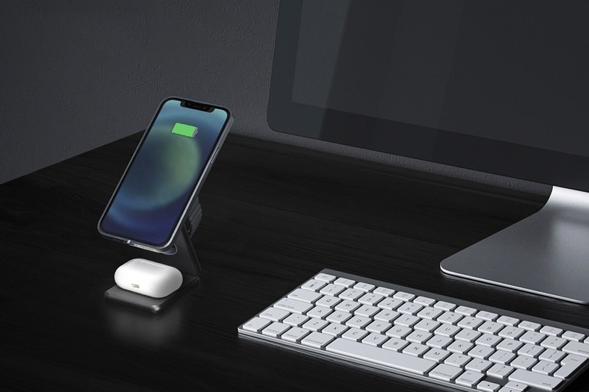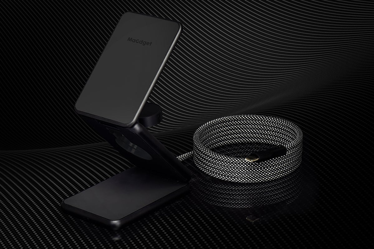 フラットスタイルであれば、MagSafeマグネット内蔵の充電パッドにワイヤレス充電対応のスマートフォンを設置しても、同時充電時に最大15Wの高速充電が可能です。