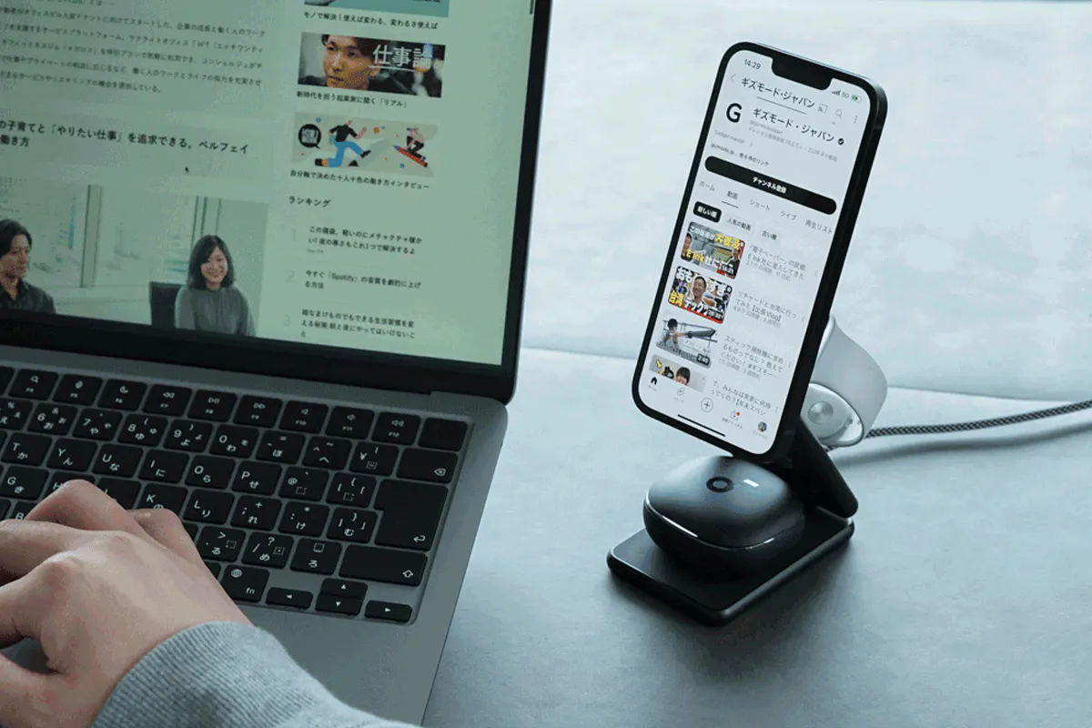 Apple3種の神器をまとめて充電! スマホスタンドにもなる折りたたみ式充電器「MaGdget Fold Charge」