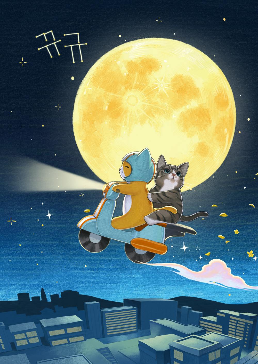 10名様限定で黒猫のマメが座っている部分にご支援者様のペットの画像を送っていただければイラストを描いて、ペットの名前は夜空に星座のように書いてお送りするリターンもご用意しております!