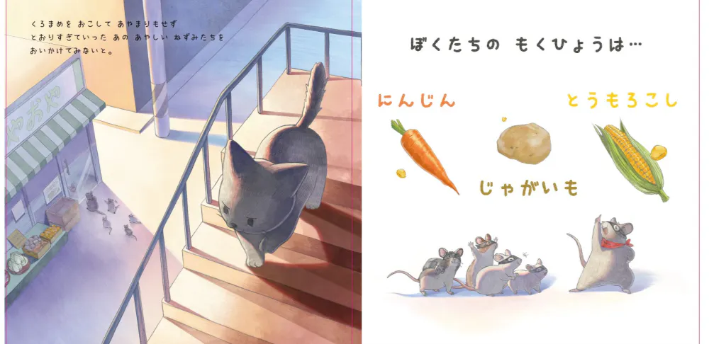 いつものように一人で過ごしていたマメは、ある日、ネズミの泥棒軍団を発見します。