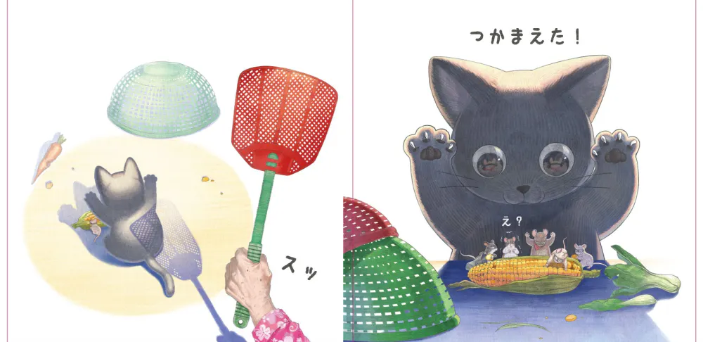 マメはおばあさんの大切なトウモロコシを守ろうとネズミたちを捕まえますが、おばあさんはマメが泥棒だと勘違いをしてしまうのです。