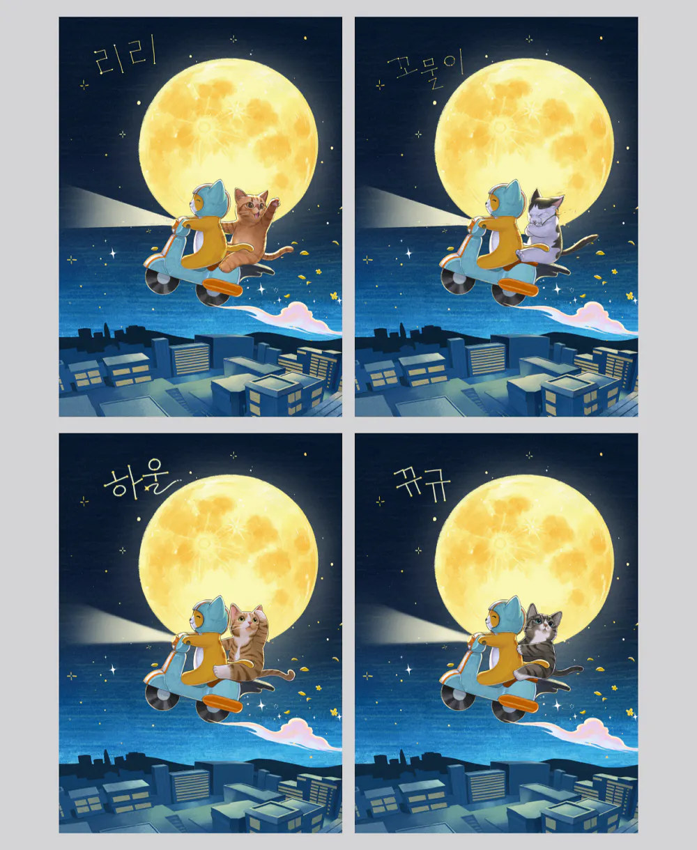 街のノラ猫や捨て猫などを見ても、何もできない自分にいつも悔しさを感じました。大好きな動物が人間に捨てられ、傷つくのをこれ以上見たくなくて、彼らに対する暖かい気持ちを通して偏見や誤解を減らしたかったです。そのため、自分に何かできることはないか考えました。そこで思いついたのが、「街でよく見かけるノラ猫たちをかわいいキャラクターにしよう!そして日常を描いてみよう」となり、SNSで漫画を紹介し、より皆様に近づきたくて「大丈夫」という絵本を作りました。