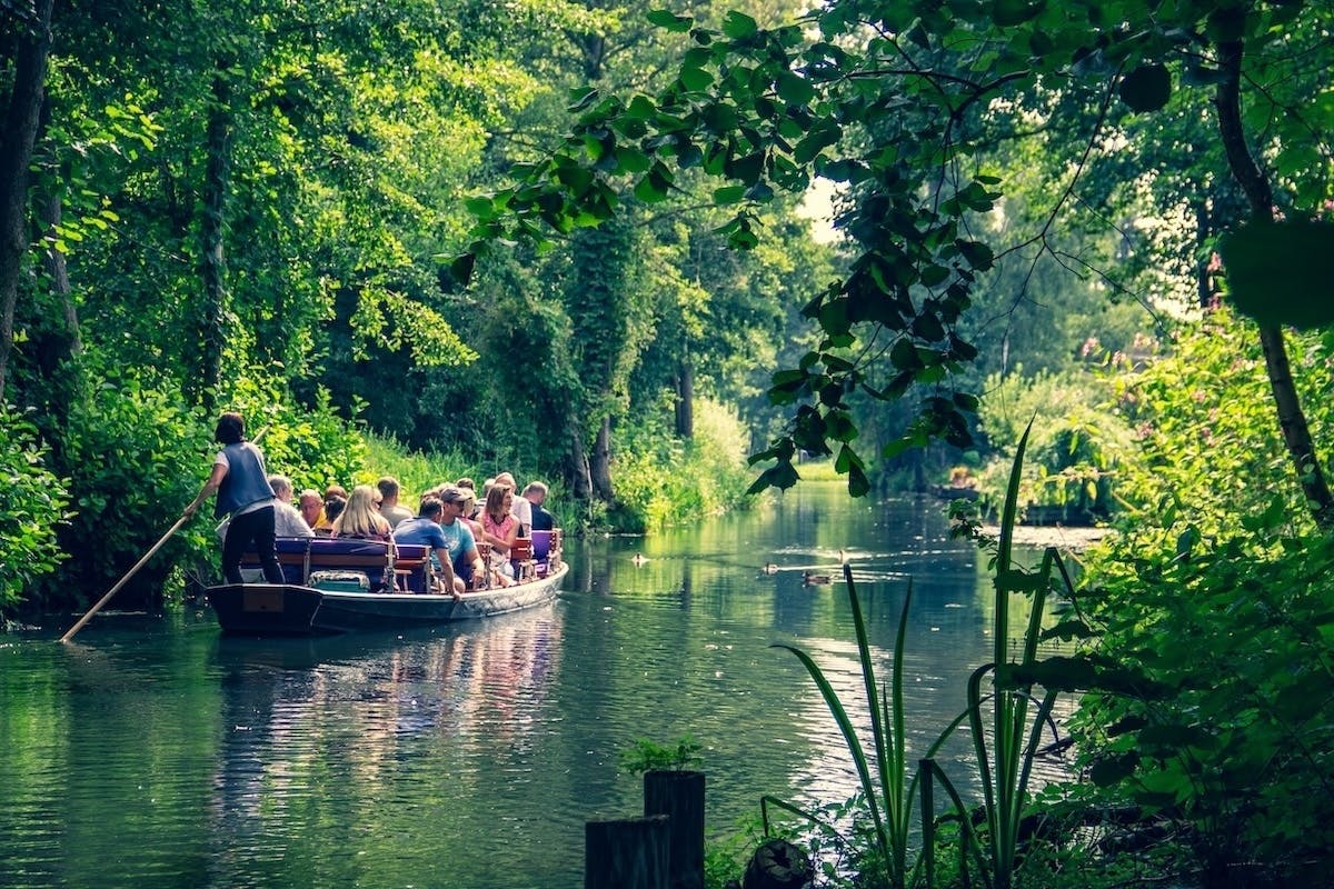 まるで妖精でも住んでいそうな美しく静けさに包まれた広大な湿地「シュプレーヴァルト」では、緑が生い茂る森の中を繋がり合う無数の水路が見られる。