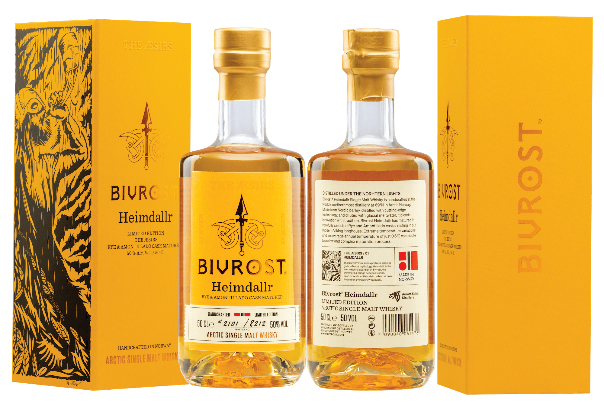 そんなヘイムダルをテーマに氷河の水とノルウェー産大麦でつくられたシングルモルトウイスキーはライウイスキー樽、アモンティリャード樽、バーボン樽、チーク樽という厳選されたユニークで考え抜かれた組み合わせの熟成樽を使用。