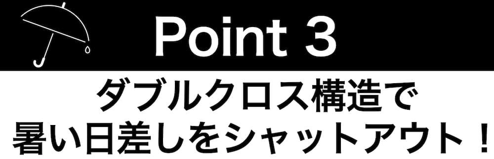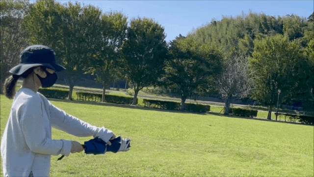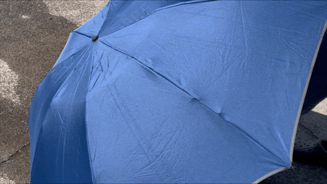 表面と裏側の生地の間に空間を作る事で直接熱が伝わりにくく、空間に溜まった熱気は歩いている間に傘の外側の隙間より自然に流してくれます。