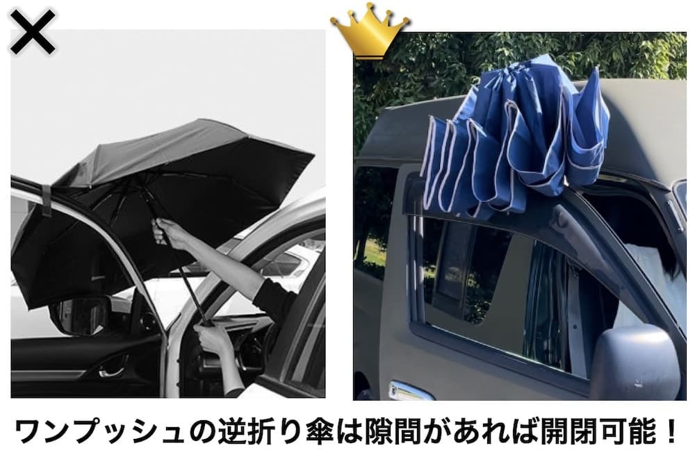 片手でパッと開くから車などの乗り降りも濡れすに楽々♪