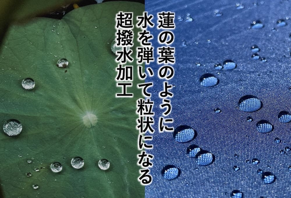 耐久性だけでなく撥水性にも優れ、雨水は丸まって付着しにくく、一振りで雨水を落とすことができます。※小さな雨粒は生地の表面に残る場合がございます。