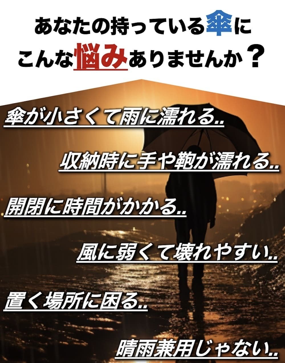いつもご使用している折りたたみ傘が小さくてご不満に思っていた方や、ご家族でやカップルでご使用されたり荷物を運ぶ時など様々な用途で大活躍できる折りたたみ傘を企画しました。