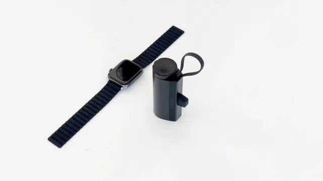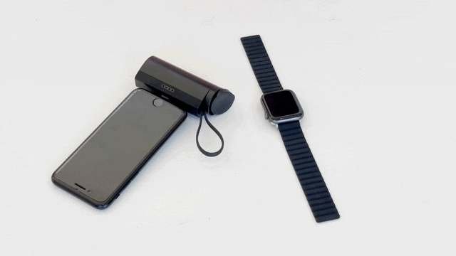 iPhoneとApple Watchをセットしたら、側面のスイッチをON。同時充電開始です。