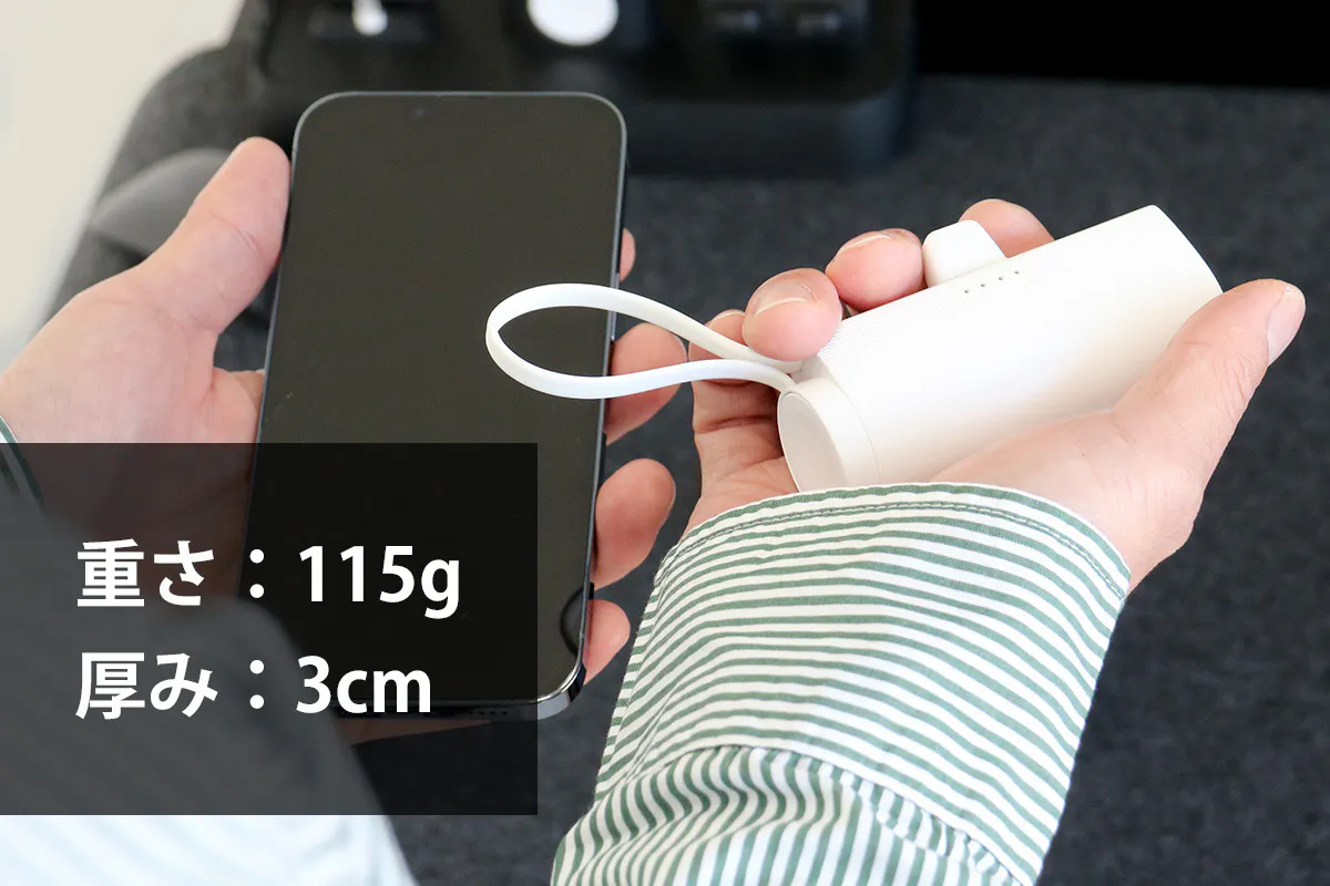 本体は100gちょっとの軽さ。手に握りやすいちょうどいい厚み・コロンとした丸みのある形は、女性でも手に収まるコンパクトなサイズです。
