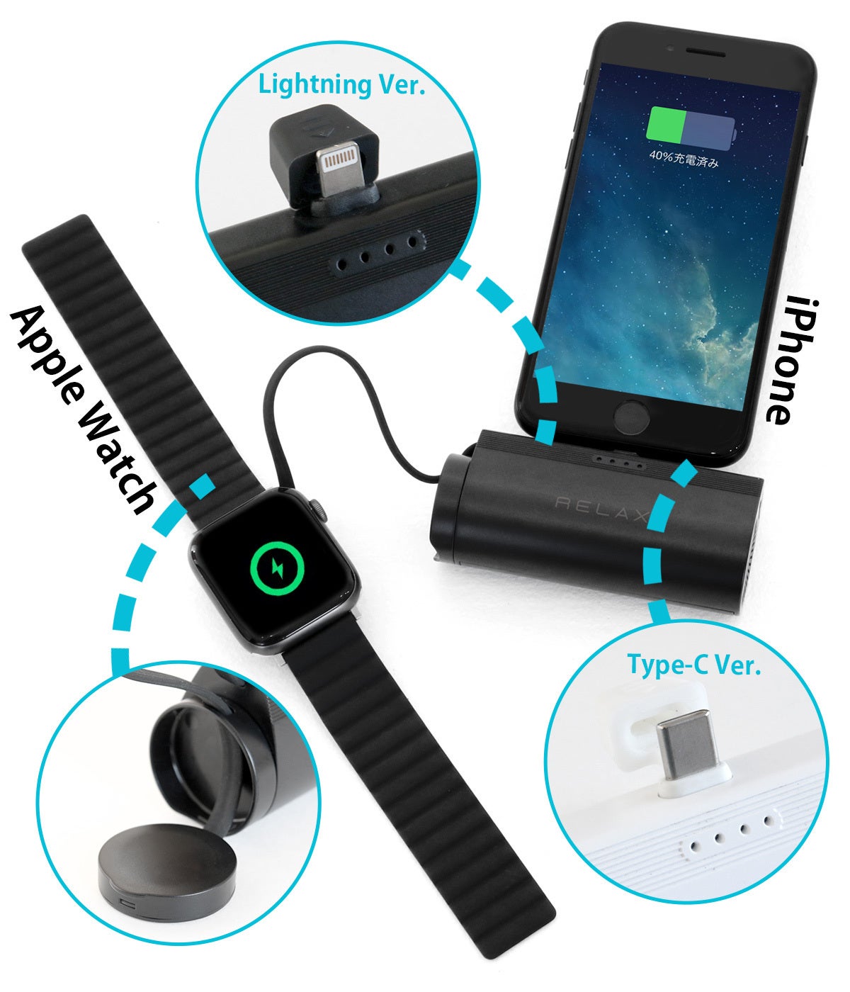「RELAX iCrew / リラックス アイクルー」は、iPhoneとApple Watchの同時充電が可能です。