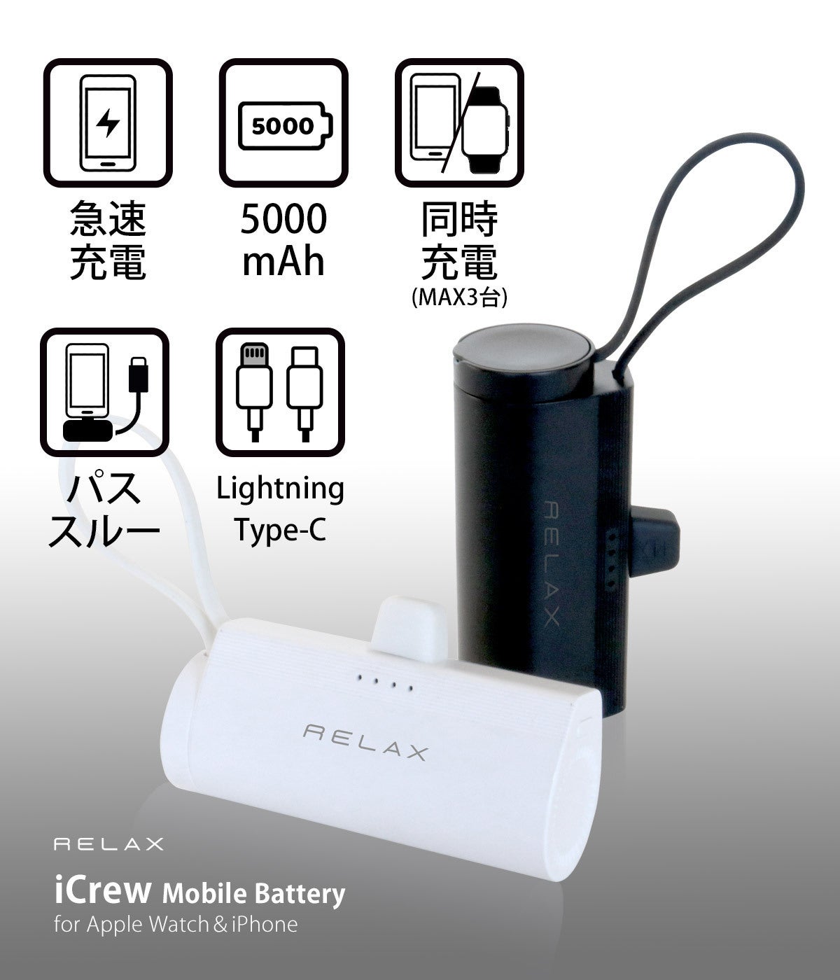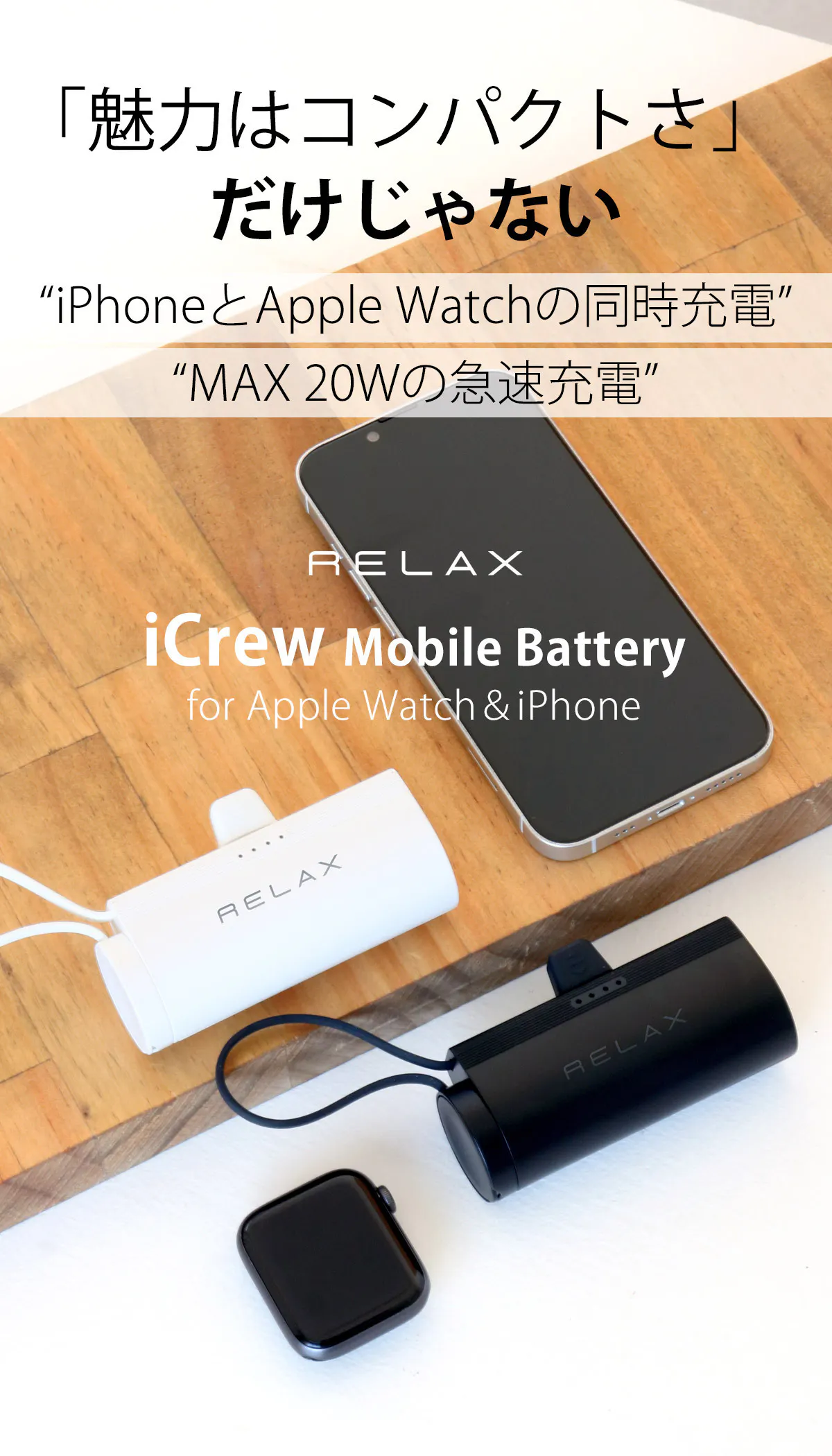 モバイルバッテリーは、外出先でiPhone(スマートフォン)の充電がなくなってしまった時の備えとして心強いアイテムで、日々の必需品になっている方も多いはず。RELAX iCrewは日常使いに特化し、持っていてよかったと思えるモバイルバッテリー。"かゆいところに手が届く"そんな商品です。