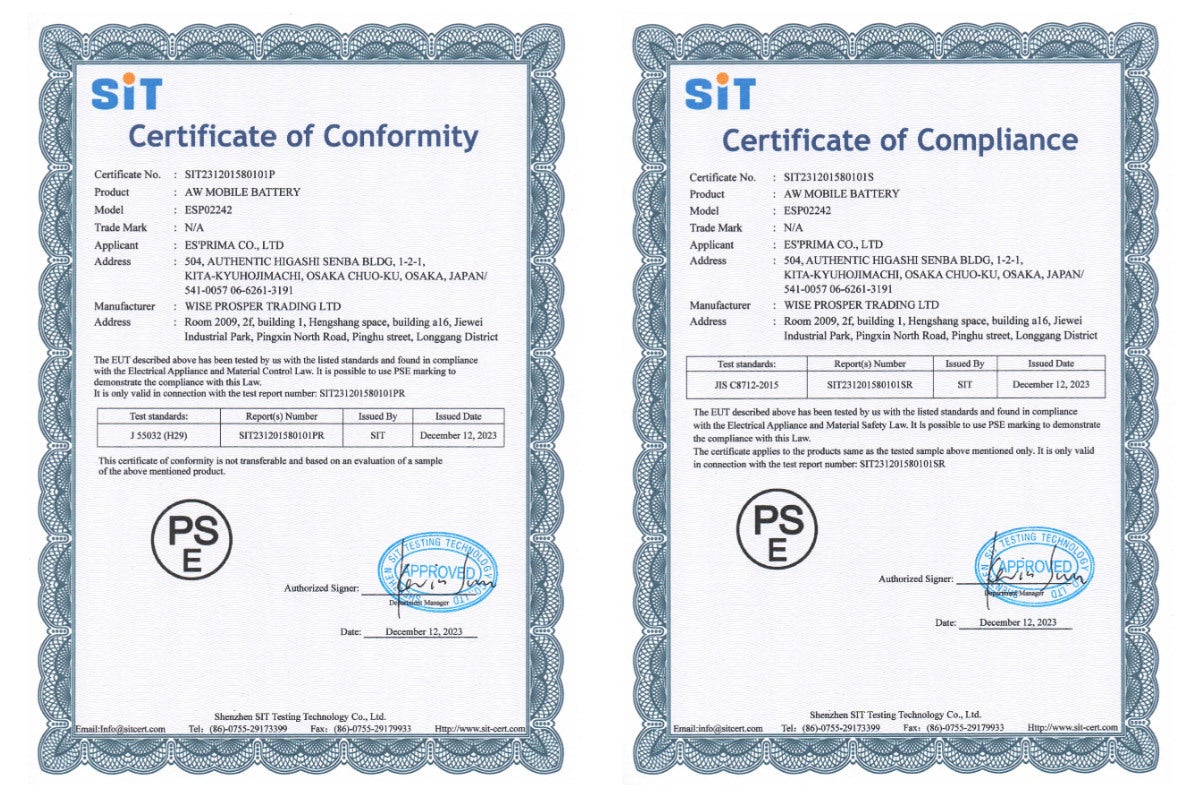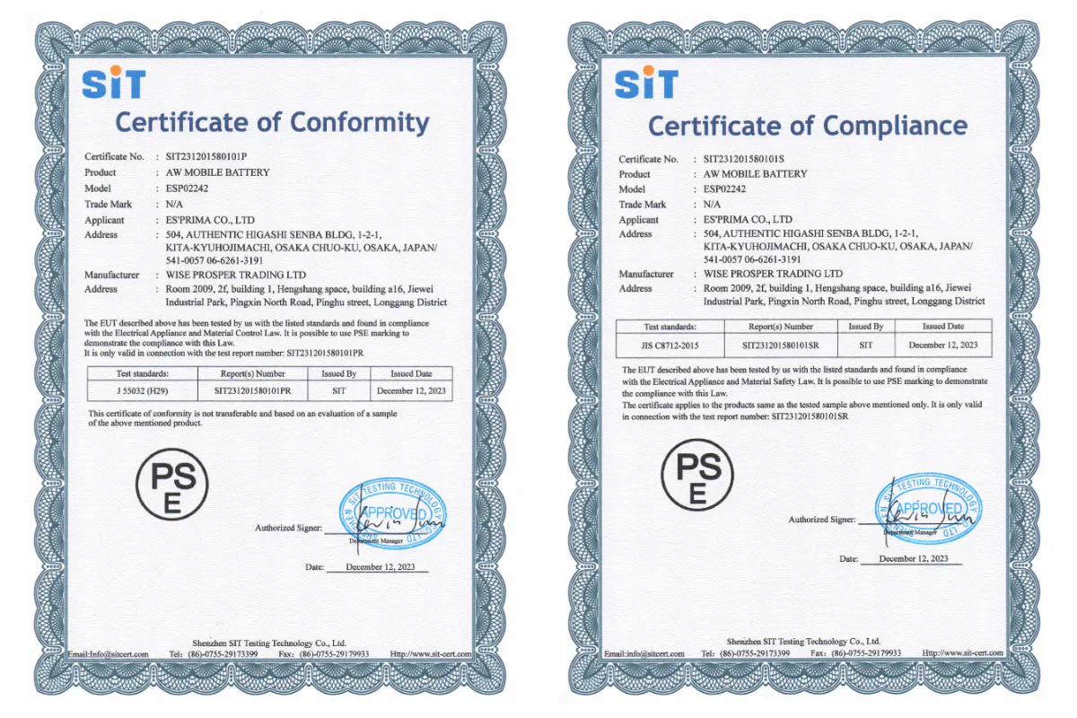 ▍本製品は電気用品安全法(PSE)認証商品です。