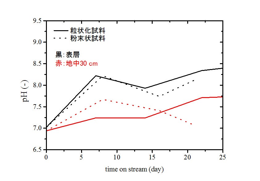 特に地中のpH変化において、粒状土壌改良剤の持続性が大変優れている点を確認しました。