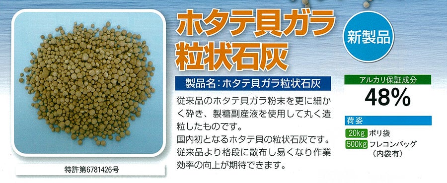 土壌改良剤としての利用における課題と、ホタテ貝殻を利用して作った粒状の土壌改良剤