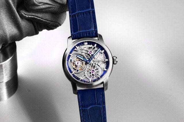 定期的にリューズでゼンマイを巻き上げる手間はありますが、その分腕時計に対する愛着が湧いていき、トゥールビヨンの素晴らしさをより身近に感じて頂けることでしょう。