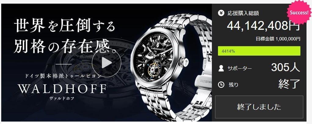 皆さまの多大なる応援と関係者の方々のご協力のもと、「THE IMPERIAL」「THE VANGUARD V8」と「Ultramatic Limited」の3アイテム、2つのプロジェクトは、支援総額55,294,900円という、予想を遥かに超える成果を収めることが出来ました。この場をお借りして、改めて御礼申し上げます。誠にありがとうございました。