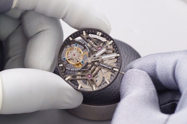 WALDHOFF社のトゥールビヨンはケースや風防といったパーツひとつ一つもこだわり抜いた逸品。