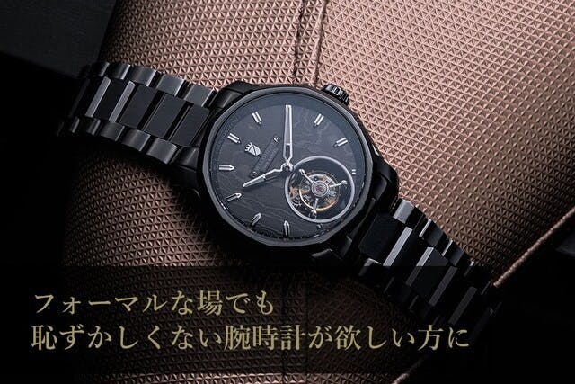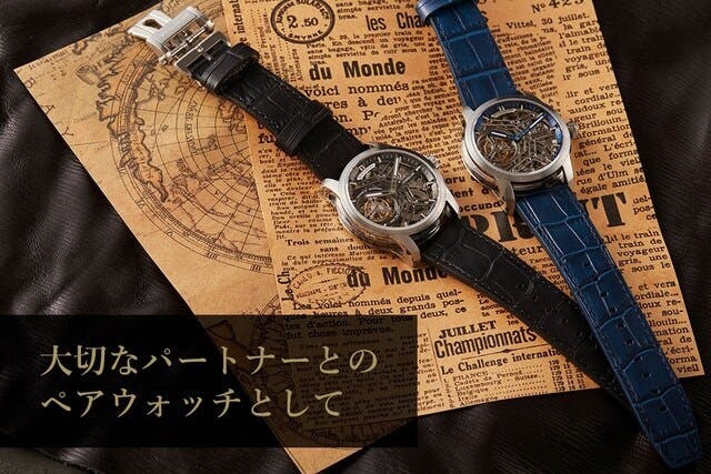 シースルーバックで機械式時計の造形美が存分に楽しめ、背景まで透けて見える様は、まるでムーブメントが宙に浮いているかのような錯覚を覚えます。