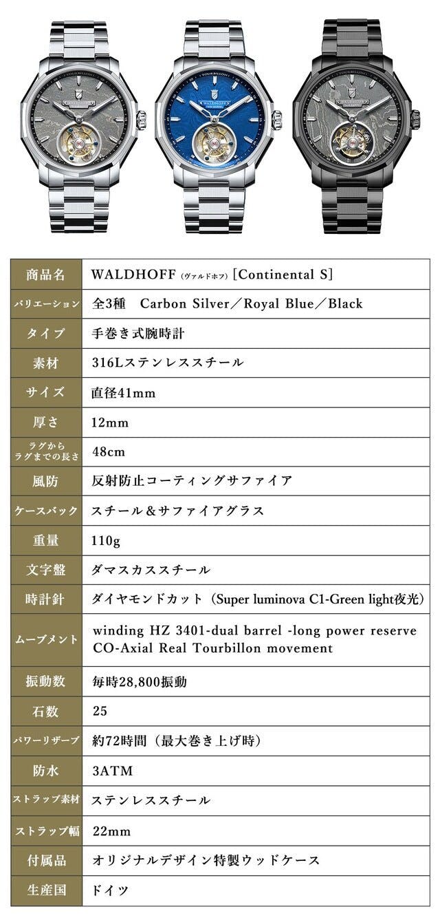 この度、WALDHOFFの第3弾として同社が誇るトゥールビヨン腕時計[QUANTUM(クオンタム)]と[Continental S(コンチネンタルエス)]をご紹介できる運びとなりました。