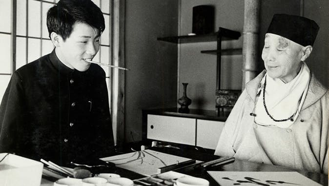 14歳の時、「日本のヘレン・ケラー」と呼ばれた大石順教尼の最後の弟子となり、”口での描画”と”生き方の修行”を始めた。