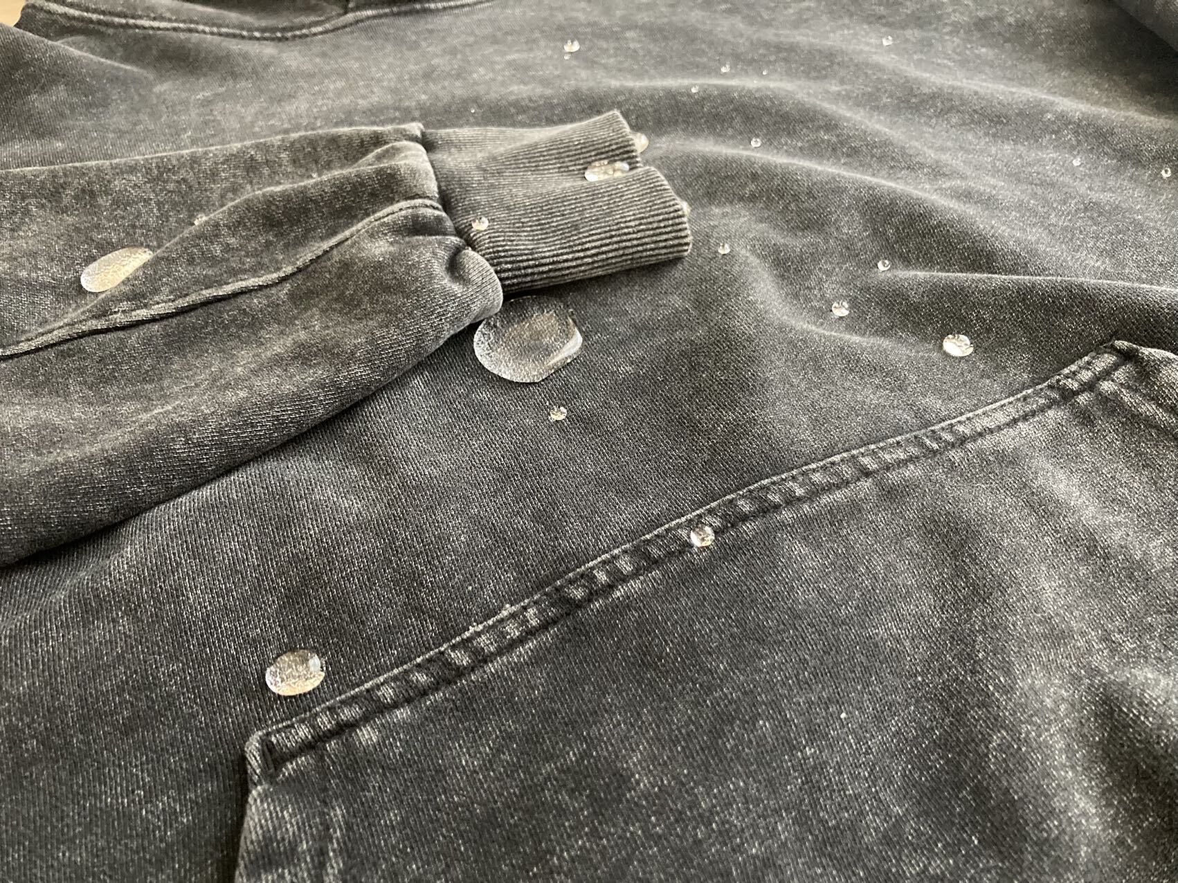 縫製部分もリブ部分も。あらゆる箇所で水が弾いています♪