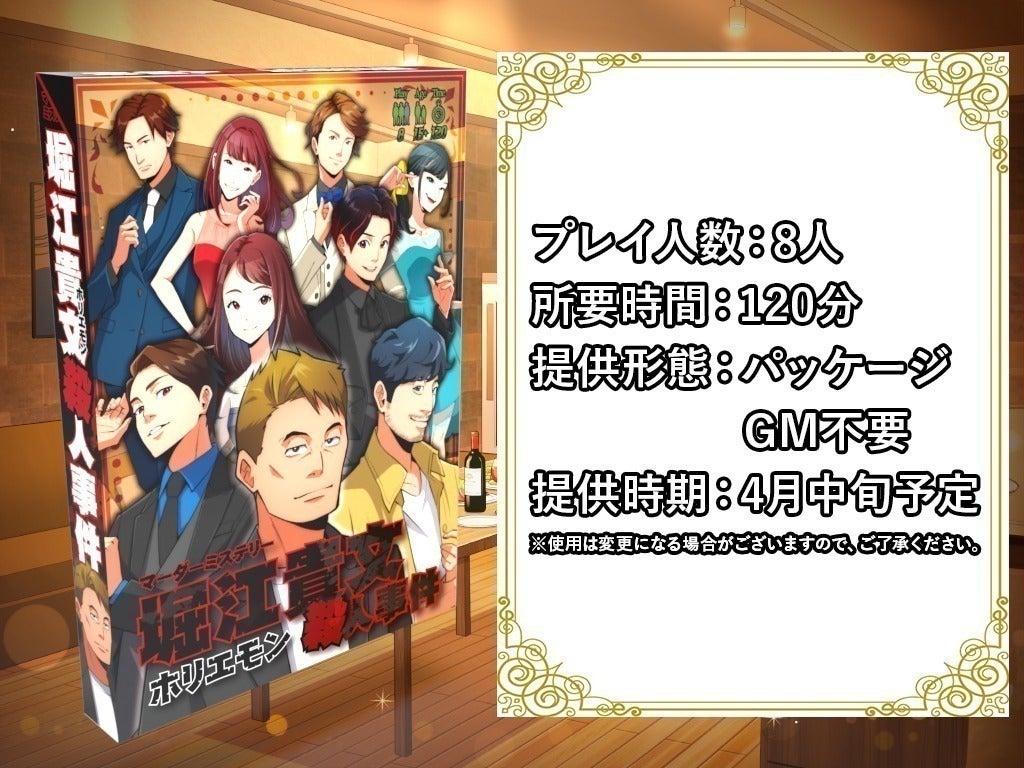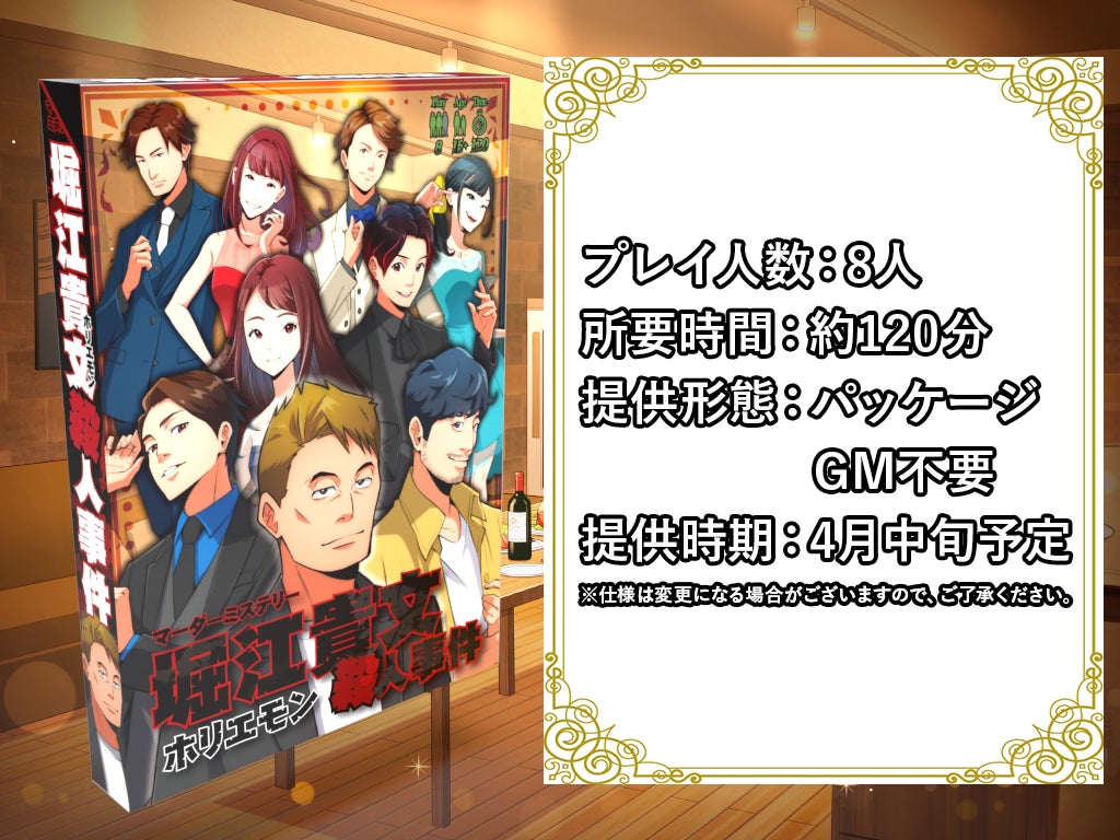 本作品は、登場人物として著名な方々にご参加いただき、ファンの皆さまをはじめ、マーダーミステリー愛好家の皆さま、そしてもちろん支援者の皆さま全てに楽しんでいただける作品にしたいと考えております。