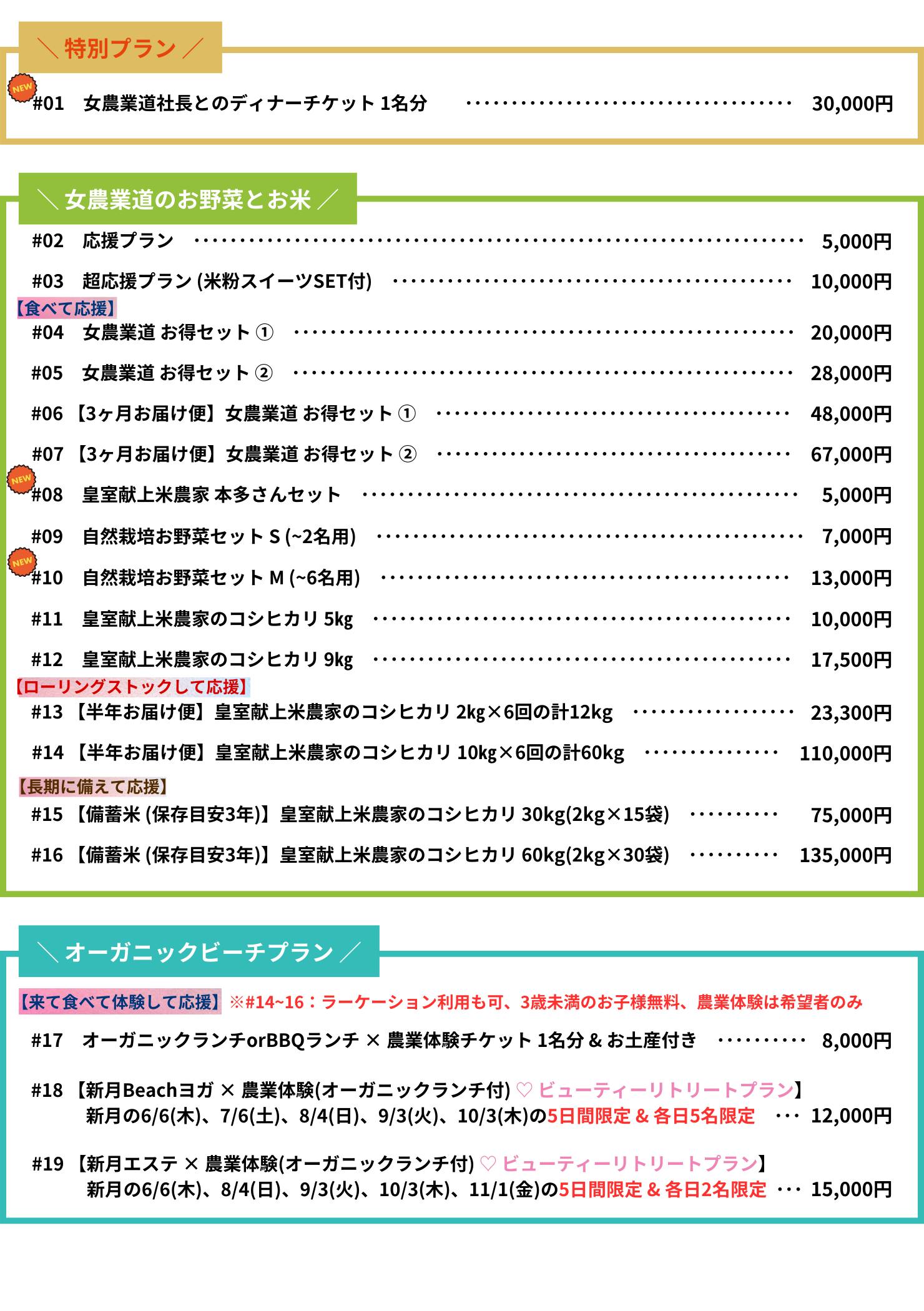 今回は、全てのリターン商品を紹介をさせて頂きます!