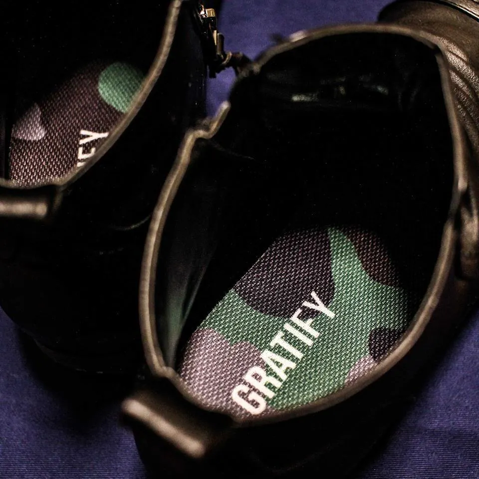 こちらは堀江貴文がかつて愛用していた幻のフットウェアブランドのデザインをイメージして、復刻させたものになります。"履く人の個性を際立たせる"の理念に恥じない、おしゃれな迷彩柄を採用しました。