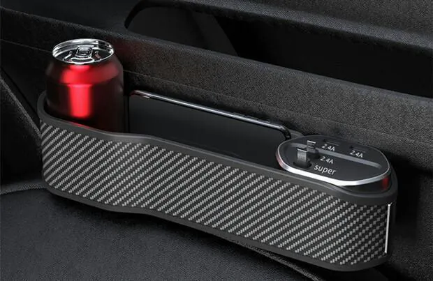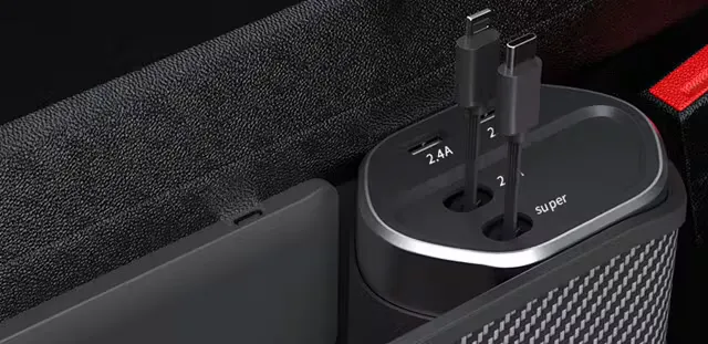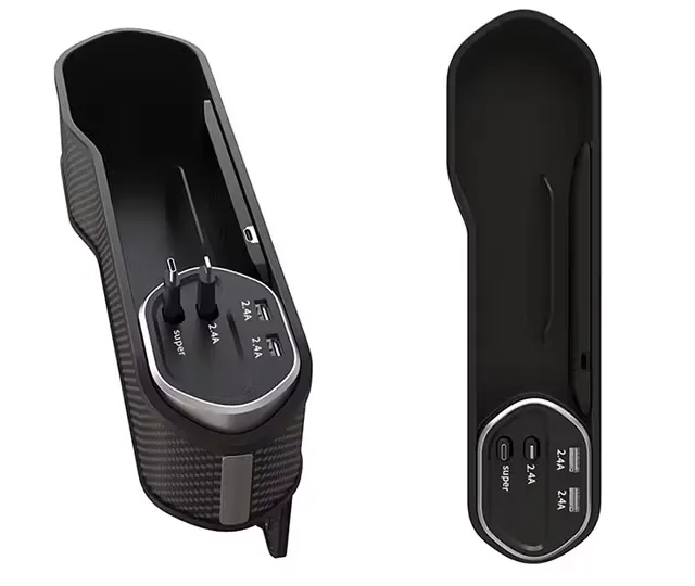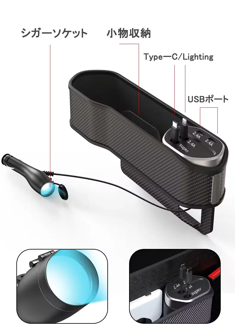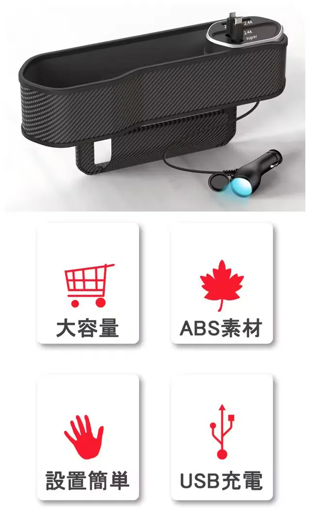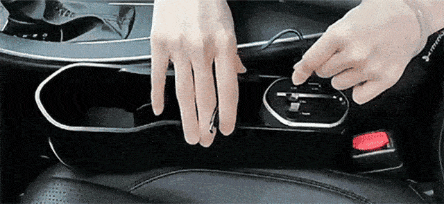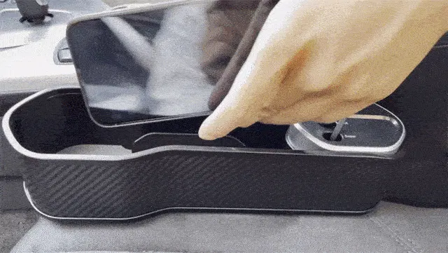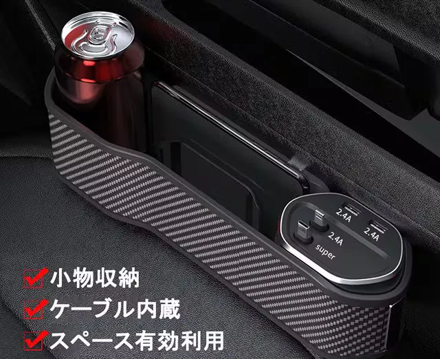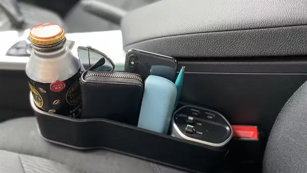スマホ、財布、飲み物などの収納に大変便利です。その上、シガーソケットから電源を確保し、内蔵ケーブルもしくはワイヤレス充電パネルでスマホ充電することも可能です。